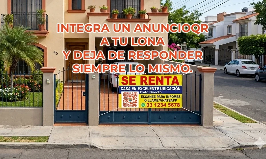 ¿Cansado de responder siempre lo mismo al rentar una casa? Descubre cómo un AnuncioQR en tu lona puede automatizar la información y ahorrarte horas de mensajes repetitivos.